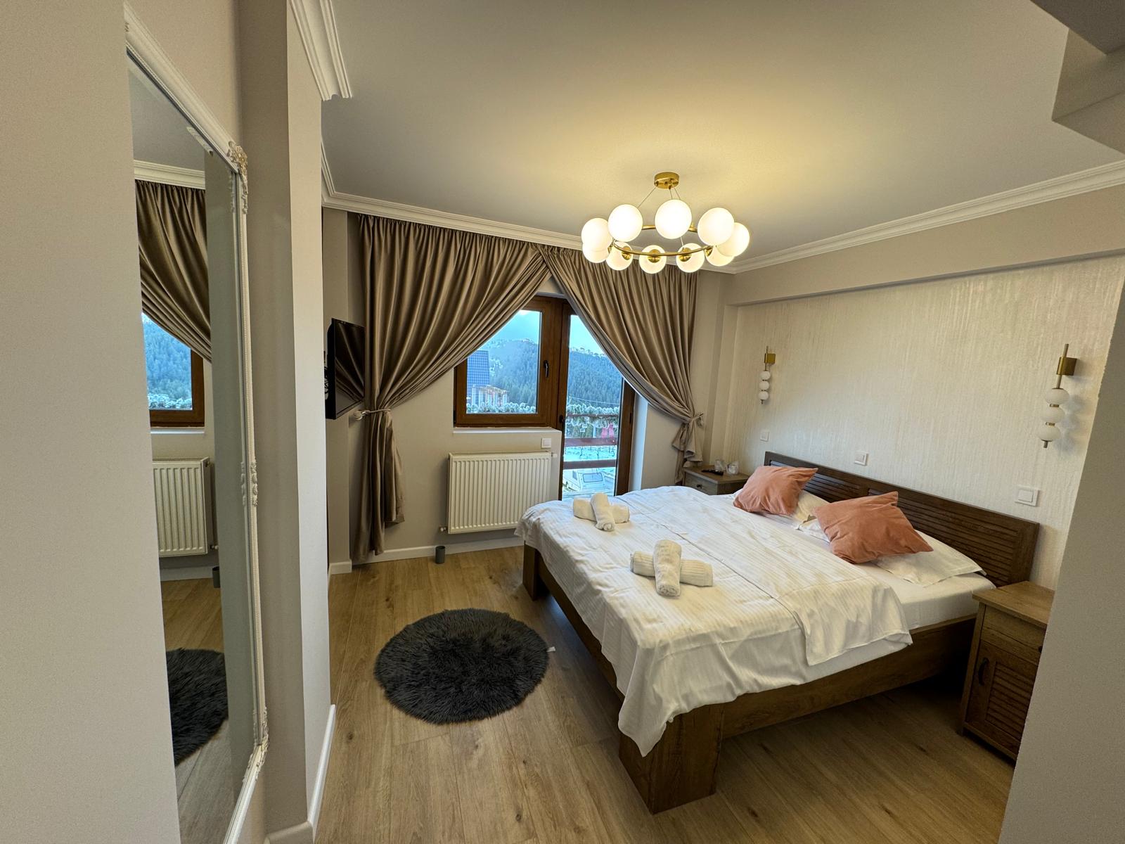 Toate camerele sunt nou renovate, dispun de baie proprie, frigider in camera, wi-fi și vedere către munte.